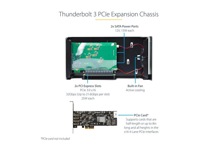 StarTech.com Thunderbolt 3 PCIe Expansion Chassis, Enclosure Box W/Dual PCI-E Slots, External PCIe Slots for Laptops/Desktops/All-In-Ones, 8K/4K Output Via TB3/DP 1.4 Ports - For PCI Express Cards (2TBT3-PCIE-ENCLOSURE) - Extension de bus système - DP - 120 Watt - Conformité TAA