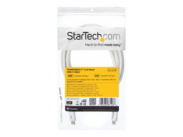 Ce câble Thunderbolt 3 vous permet de vous connecter à n'importe quel port Thunderbolt 3 (USB-C ) pour transmettre des vidéos et des données à vos appareils Thunderbolt, USB et DisplayPort. De plus, le câble vous permet également de charger vos appareils et vous pouvez brancher jusqu'à 6 appareils Thunderbolt 3 dans une installation en série.