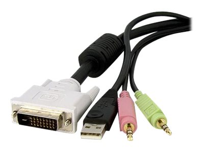 StarTech.com Câble de commutateur KVM DVI-D Dual Link USB 4 en 1 de 3m avec audio et microphone - Câble clavier/vidéo/souris/audio - USB, mini-phone stereo 3.5 mm, DVI-D (M) pour mini-phone stereo 3.5 mm, USB type B, DVI-D (M) - 3 m - noir - pour P/N: RKCOND17HD, SV231DVIUAHR, SV231QDVIUA, SV231TDVIUA, SV431DL2DU3A, SV431TDVIUA