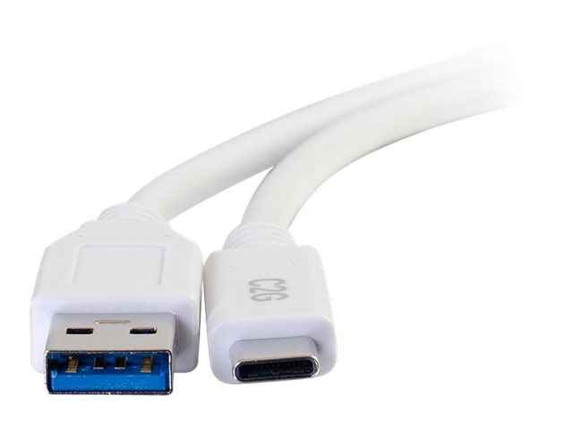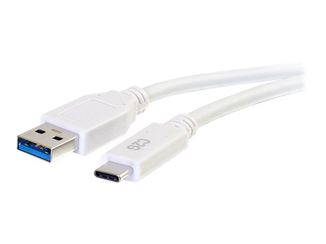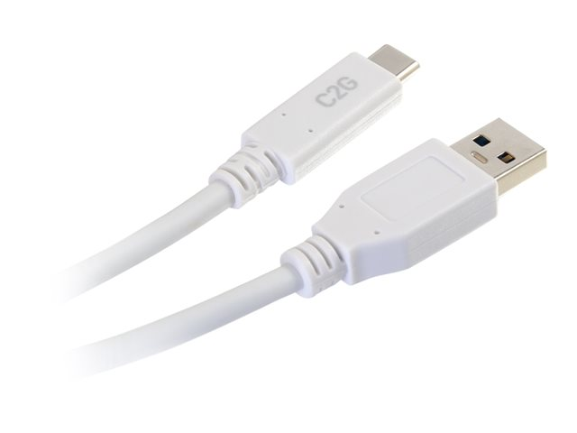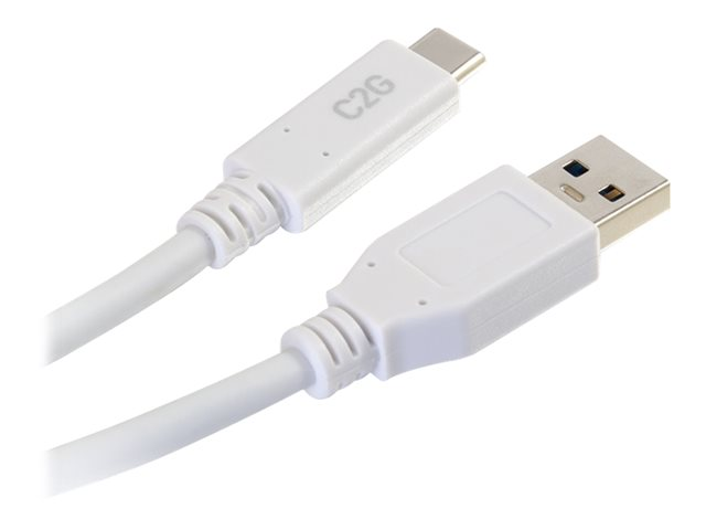 C2G 10ft USB C 3.0 to USB Cable - USB C to USB A - M/M - Câble USB - USB type A (M) pour 24 pin USB-C (M) - USB 3.1 - 30 V - 3 A - 3.05 cm - blanc