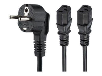 StarTech.com Câble d'alimentation PC - Cordon secteur en Y Schuko vers C13 de 2 m - Prise européenne vers 2x C13 - Câble d'alimentation - power CEE 7/7 (M) pour power IEC 60320 C13 - CA 250 V - 10 A - 2 m - noir PXT101YEU2M