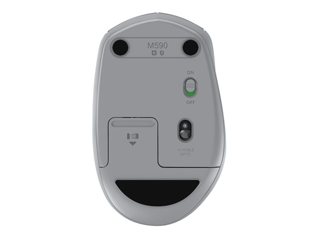 Logitech M590 Silent - Souris - pour droitiers - optique - 7 boutons - sans fil - Bluetooth, 2.4 GHz - récepteur sans fil USB - ton gris moyen