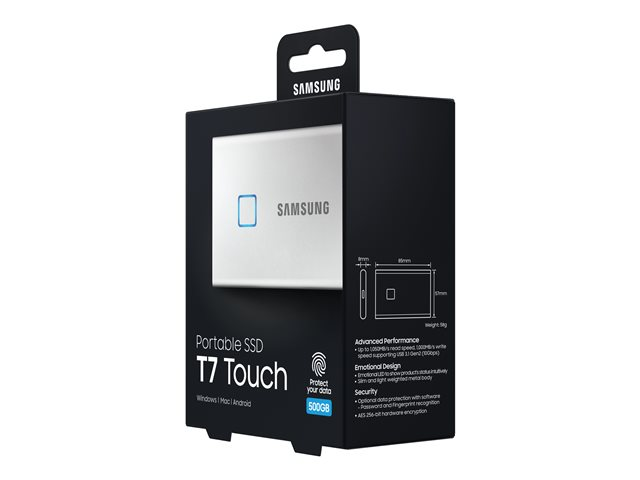 Samsung T7 Touch MU-PC500S - SSD - chiffré - 500 Go - externe (portable) - USB 3.2 Gen 2 (USB-C connecteur) - AES 256 bits - argent MU-PC500S/WW