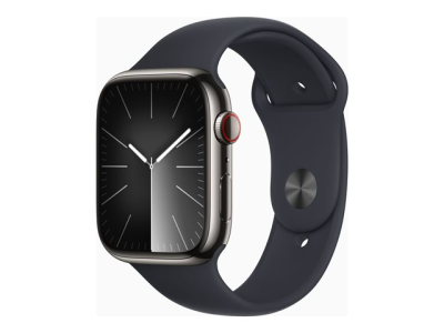 Apple Watch Series 9 (GPS + Cellular) - 45 mm - acier inoxydable graphite - montre intelligente avec bande sport - fluoroélastomère - minuit - taille du bracelet : S/M - 64 Go - Wi-Fi, LTE, UWB, Bluetooth - 4G - 51.5 g