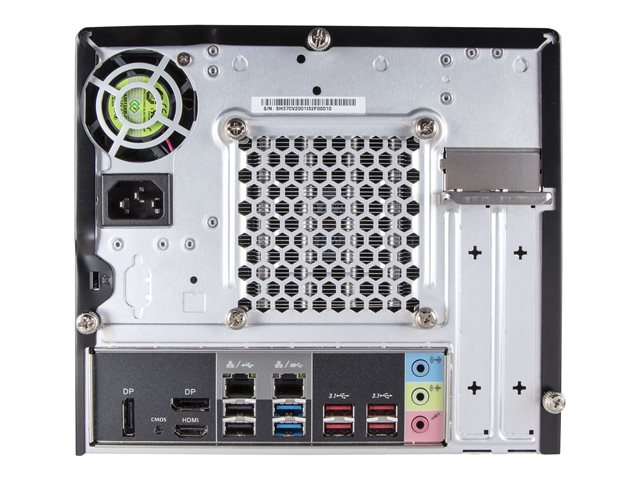 | Interfaces | 2 x microphone (1 avant, 1 arrière) 1 x casque (1 à l'avant) 4 x USB 3.1 Gen 1 (2 à l'avant, 2 à l'arrière) 2 x USB 2.0 1 x entrée de ligne audio 1 x sortie de ligne audio 1 x HDMI 2 x DisplayPort 2 x LAN (Gigabit Ethernet) 4 x USB 3.1 Gen 2 |